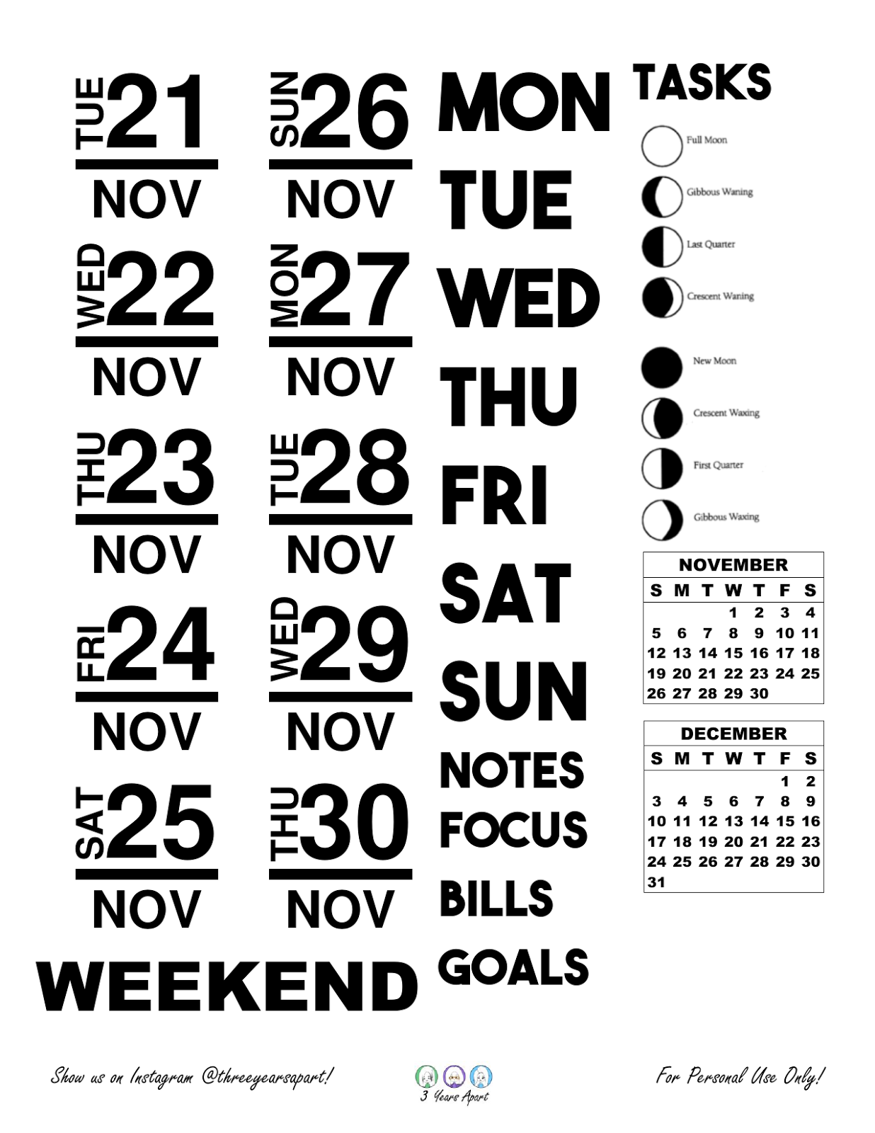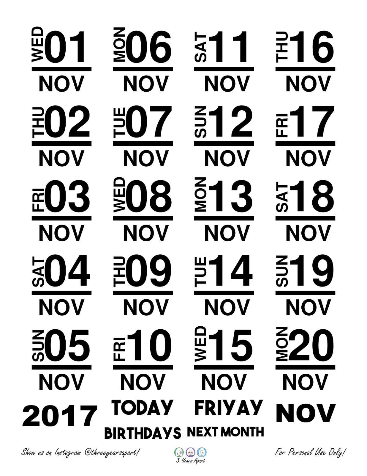 November 2017 Free Bullet Journal And Planner Printable Stickers 3