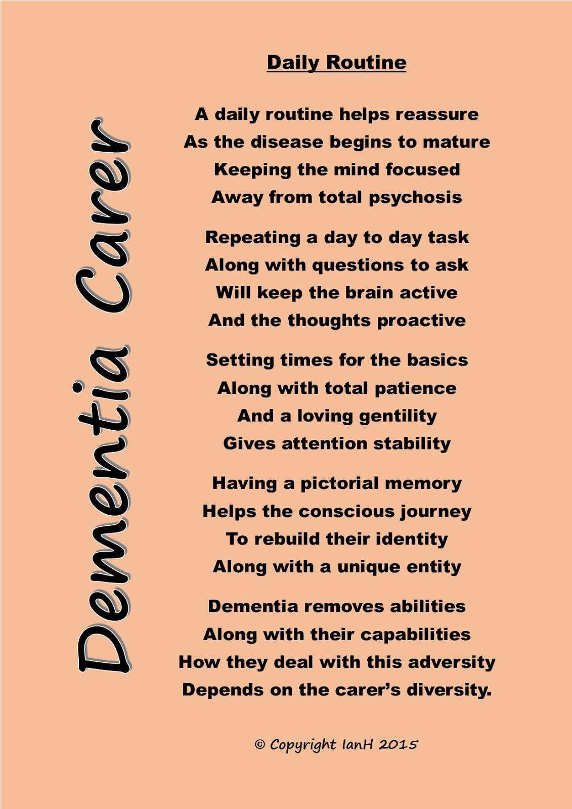 Dementia Carers Poems Daily Routine