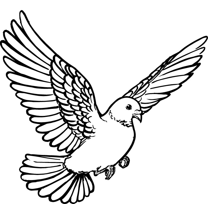 A Beautiful Flying Pigeon Drawn In Smooth Lines
