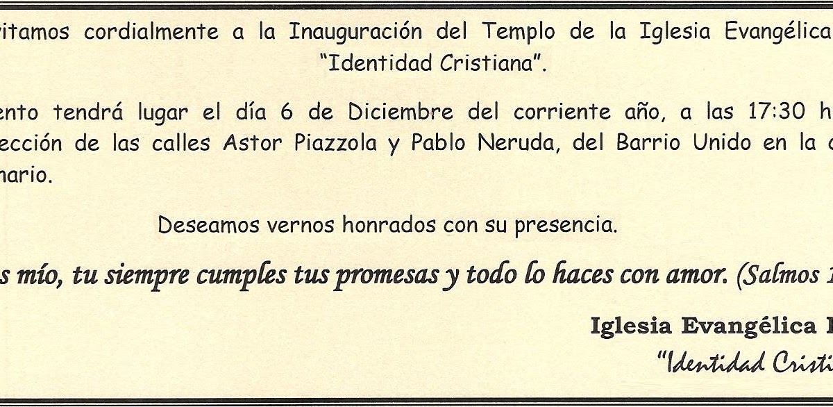 Invitacion A La Inauguracion Del Templo En Tablada Nueva Villa