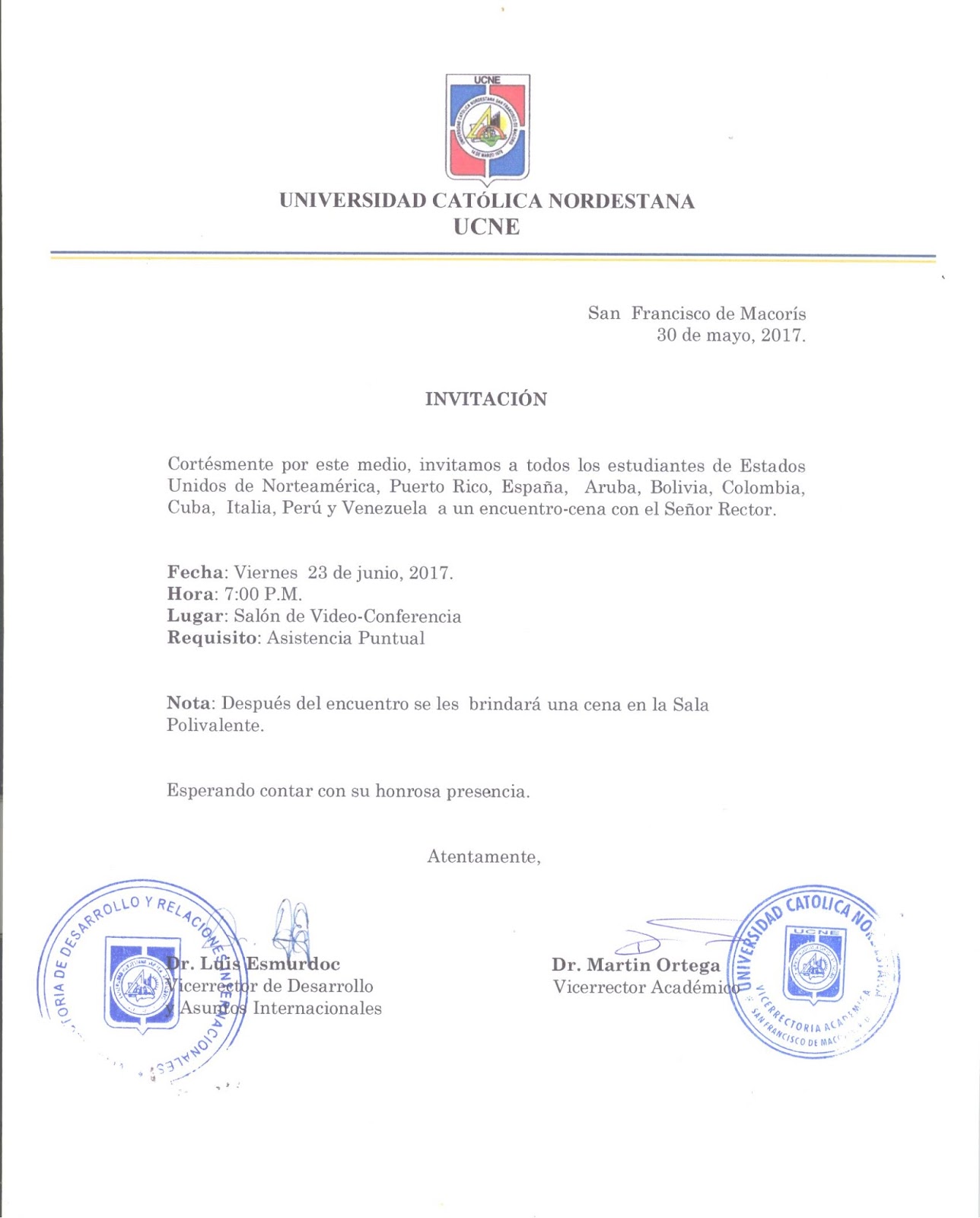 Invitacion vocablo con origen en el termino latino invitatio es una palabra que refiere al acto y resultado de ser invitado o de invitar. El verbo invitar por su parte se interpreta como la accion de convocar o estimular a un individuo para que asista a alguna clase de evento o reunion. Carta de invitacion a un evento normalmente y esto es algo muy comun las personas calificadas o que ellos se sienten como generosos y que tienen algun tipo de sensibilidad siempre se sienten bien consigo mismo y les produce placer y sentirse bien con ellos mismos cuando invitan a la gente. Ver otros formatos de carta de invitacion.