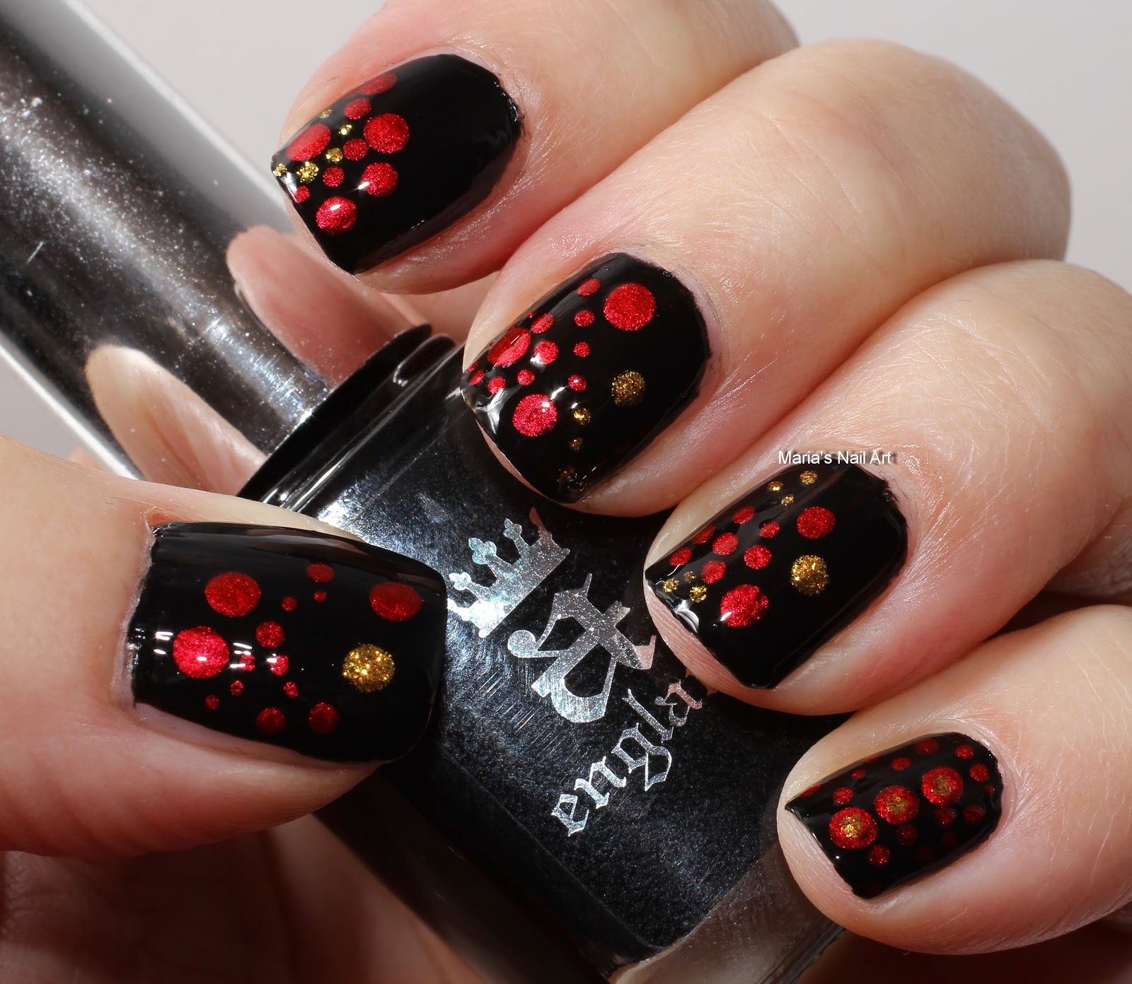 Black Red Gold Dotticure Nail Art
