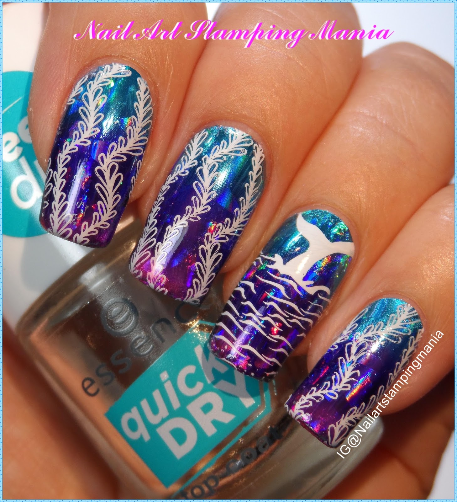 Nail Art Stamping Mania Ocean Manicure With Nail Foil And Creative